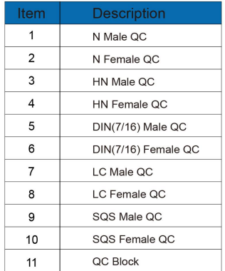 Quick change Adaptor kit include Type N、HN、DIN(7/16)、LC、SQS which is the most common used in RF testing adaptor.Besides,these adaptor also can be used in RF Generator and match interface which do not need soldring but with good contact requirement.Nickel plated body and gold plated inner conductor gurrantee long term working without performance degradation.